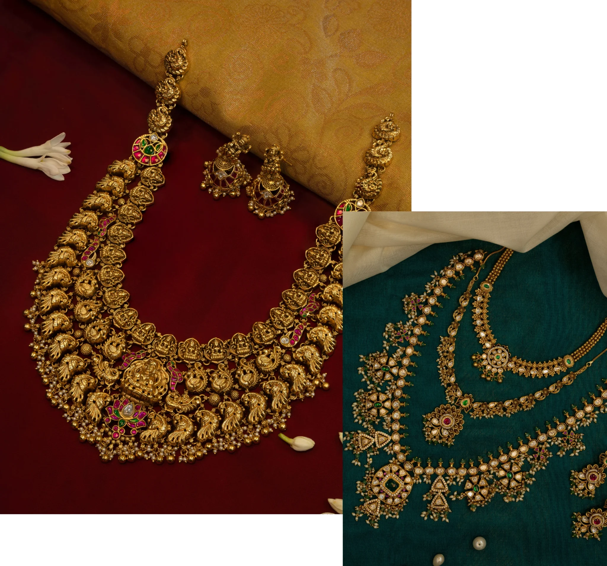 Since 1983, Prabhu Jewellers has been synonymous with elegance and craftsmanship in South India. We take pride in offering exquisite bridal jewellery that enhances your beauty on your special day. Whether you’re looking to rent, buy, or customise, we are here to help you find the perfect pieces to complement your style.